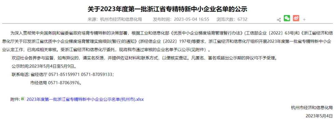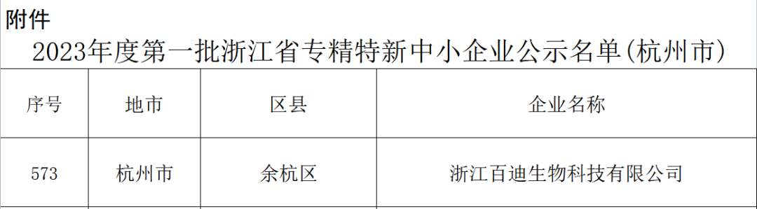 近日,杭州市经济和信息化局发布了《关于2023年度第一批浙江省专精特新中小企业名单的公示》,浙江竞技宝电竞生物科技有限公司成功入选!